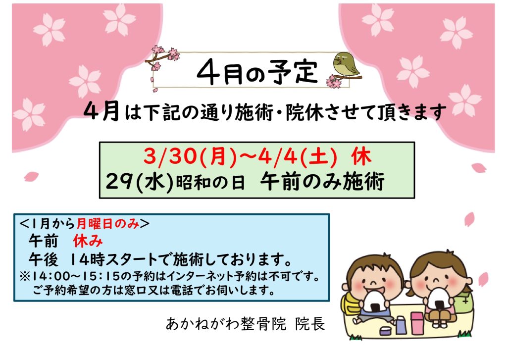 ★4/29(水)昭和の日 は午前中のみ施術致します。